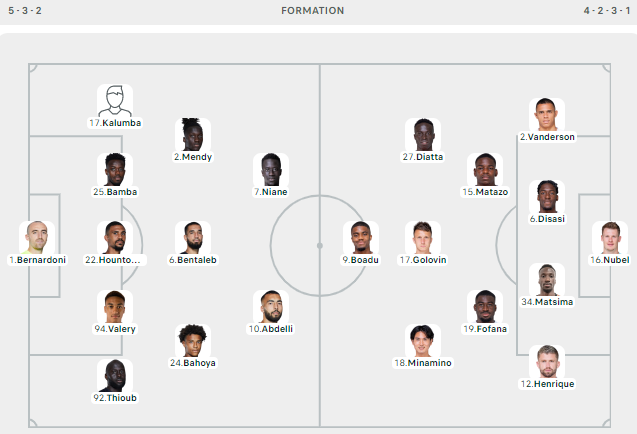Monaco: Nubel, Matsima, Disasi, Sarr, Henrique, Diatta, Fofana, Camara, Golovin, Ben Seghir, Ben Yedder.