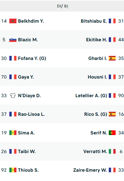 Angers: Capelle, El Melali, Salama, Kella, Eneme-Ella, Diony chấn thương. Bentaleb treo giò.