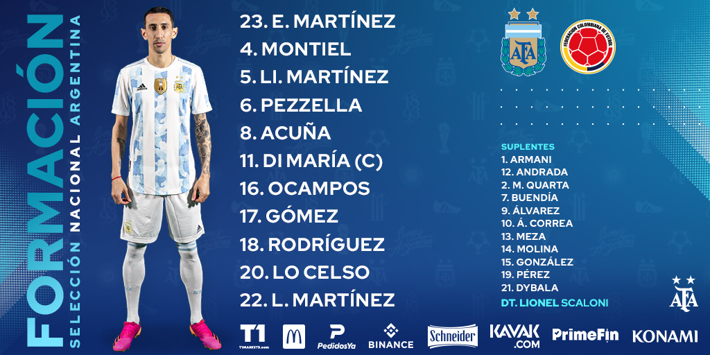 Argentina: E. Martinez; Molina, Martinez Quarta, Li. Martinez, Acuna; Di Maria, Lo Celso, Rodriguez, Ocampos; La. Martinez, A. Correa.