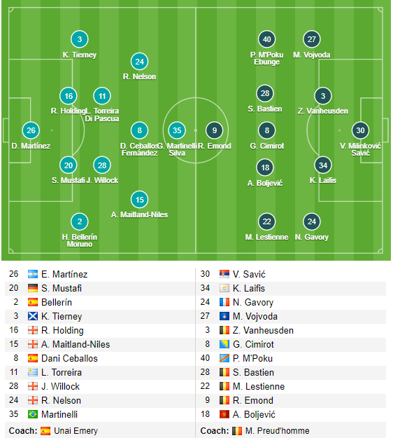 - Arsenal: Hector Bellerin và Kieran Tierney có thể ra sân ngay từ đầu sau khi vắng mặt ở trận gặp MU cuối tuần trước. Chỉ có Lacazette và Smith Rowe vắng mặt vì chấn thương, còn Mavropanos vẫn bỏ ngỏ khả năng ra sân.