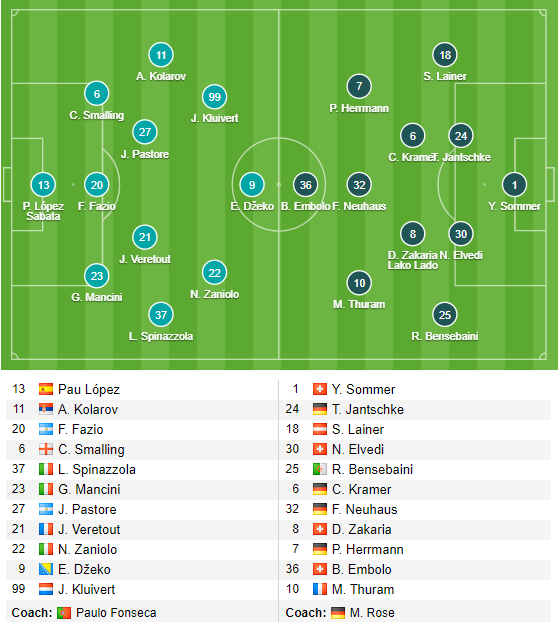 AEGoal.net cập nhật chính xác ĐỘI HÌNH RA SÂN trận AS Roma vs Gladbach diễn ra lúc 23h55 ngày 24/10 trong khuôn khổ vòng bảng UEFA Europa League.