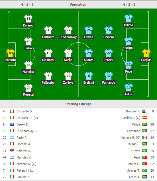 AEGoal.net cập nhật chính xác ĐỘI HÌNH RA SÂN trận AS Roma vs Porto diễn ra lúc 03h00 ngày 13/02 trong khuôn khổ Vòng 1/8 Champions League