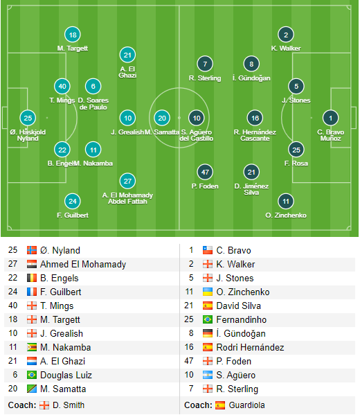 - Aston Villa: Vắng Jed Steer, Tom Heaton, Wesley và John McGinn (chấn thương); Khả năng ra sân của Anwar El Ghazi và Keinan Davis còn bỏ ngỏ.