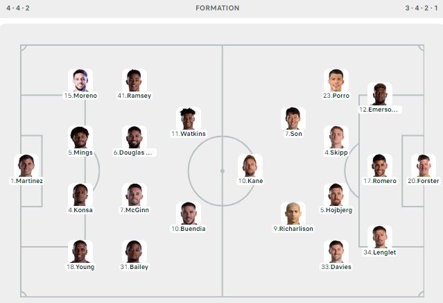AEGoal cập nhật chính xác đội hình ra sân trận Aston Villa vs Tottenham diễn ra lúc 21h00 ngày 13/05 trong khuôn khổ giải Ngoại hạng Anh.