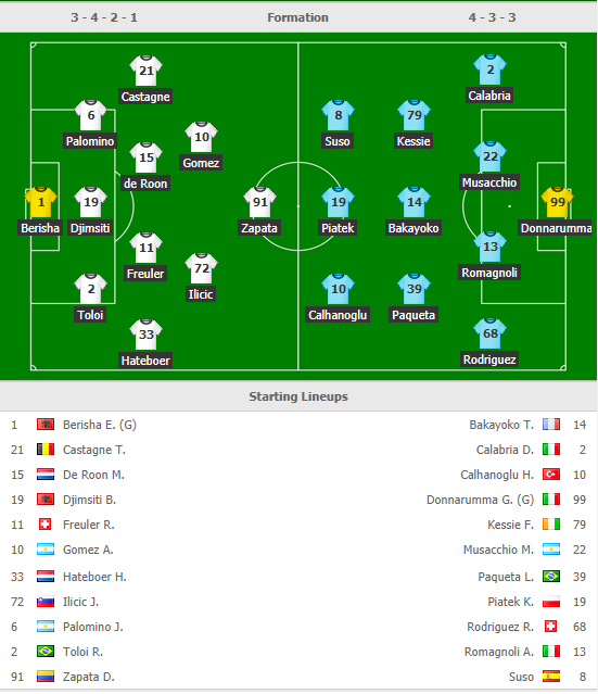 ĐỘI HÌNH RA SÂN trận Atalanta vs AC Milan, 02h30 ngày 17/02: VĐQG Italia