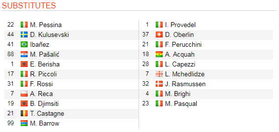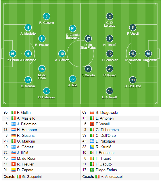 Atalanta (3-4-2-1): Gollini - Masiello, Mancini, Djimsiti - Castagne, Roon, Freuler, Hateboer - Ilicic, Gomez - Zapata