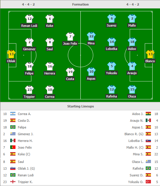 AEGoal.net cập nhật chính xác ĐỘI HÌNH RA SÂN trận Atletico Madrid vs Celta Vigo diễn ra lúc 23h30 ngày 21/9 trong khuôn khổ vòng 5 La Liga.