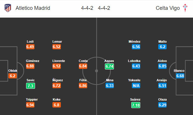 ĐỘI HÌNH RA SÂN trận Atletico Madrid vs Celta Vigo (23h30): VĐQG Tây Ban Nha