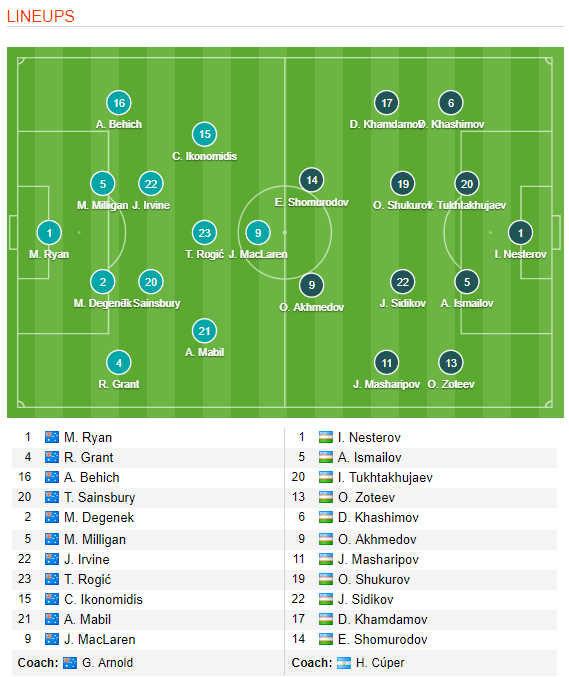 Đội hình ra sân Australia vs Uzbekistan: