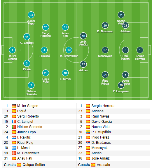 AEGoal.net cập nhật chính xác ĐỘI HÌNH RA SÂN trận Barcelona vs Osasuna diễn ra lúc 02h00 ngày 17/07 trong khuôn khổ giải VĐQG Tây Ban Nha.