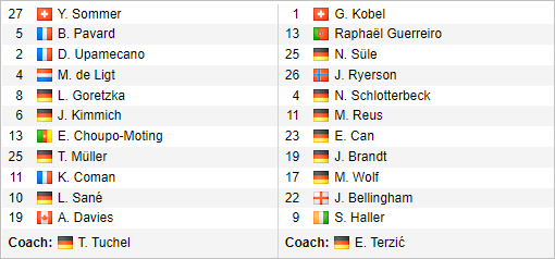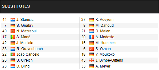 - Bayern Munich: Lucas Hernández, Neuer, Mathys Tel chấn thương; Goretzka, Choupo-Moting, Musiala không sung sức.