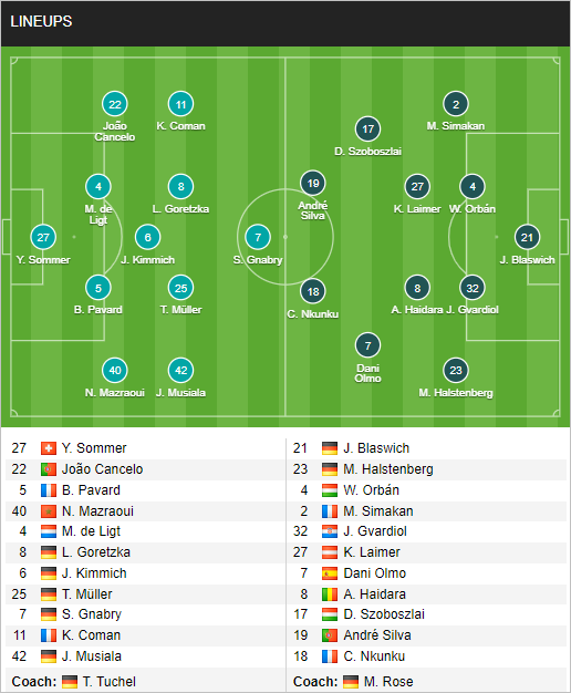 - Bayern Munich: Lucas Hernandez, Neuer chấn thương; Sommer, Stanisic, A.Davies, Upamecano, Choupo-Moting (nghi ngờ).