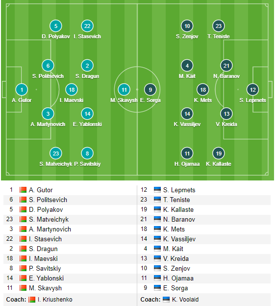 - Ở trận lượt đi, Belarus đã giành chiến thắng 2-1 trên sân của Estonia.