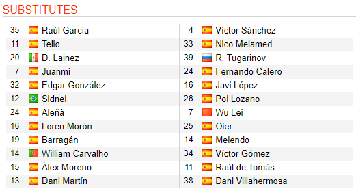 - Espanyol: Corchia chấn thương; Espinosa và Cabrera bị treo giò còn Raúl de Tomás không sung sức.
