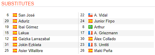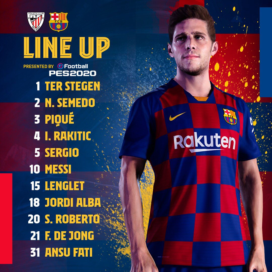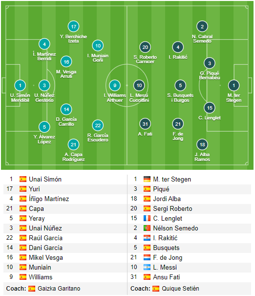 * Barcelona: Ter Stegen; Roberto, Pique, Umtiti, Firpo; Busquets, De Jong, Arthur; Messi, Griezmann, Fati.