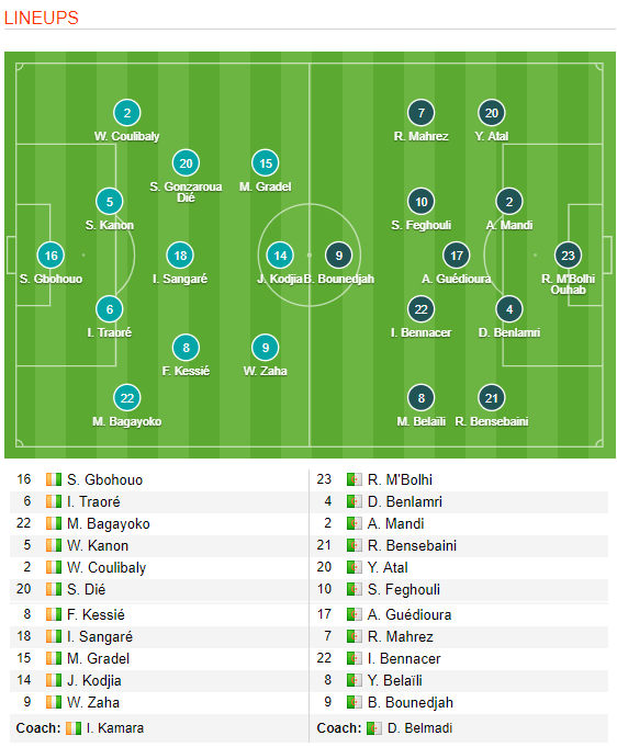 AEGoal.net cập nhật chính xác ĐỘI HÌNH RA SÂN trận Bờ Biển Ngà vs Algeria diễn ra lúc 23h00 ngày 11/7 trong khuôn khổ Tứ kết - CAN Cup 2019.