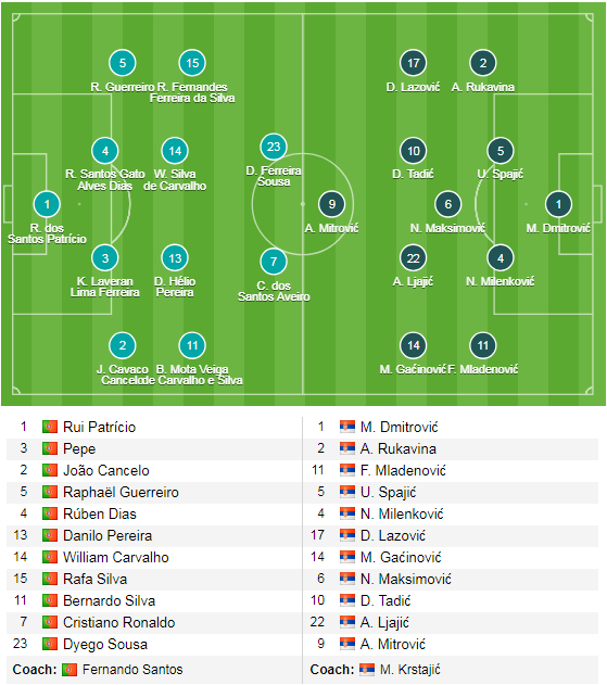ĐỘI HÌNH RA SÂN trận Bồ Đào Nha vs Serbia , 02h45 ngày 23/3: Vòng loại Euro 2020