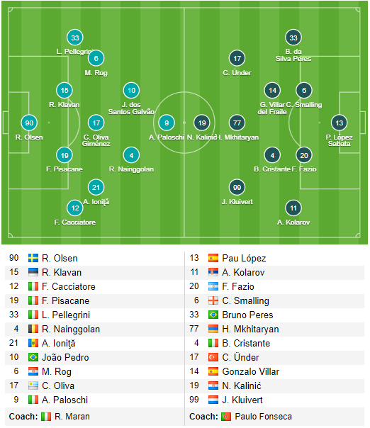 * AS Roma: Zaniolo, Zappacosta, Diawara, Mirante, Pellegrini và Veretout dính chấn thương; Gianluca Mancini cũng vắng mặt vì án treo giò.