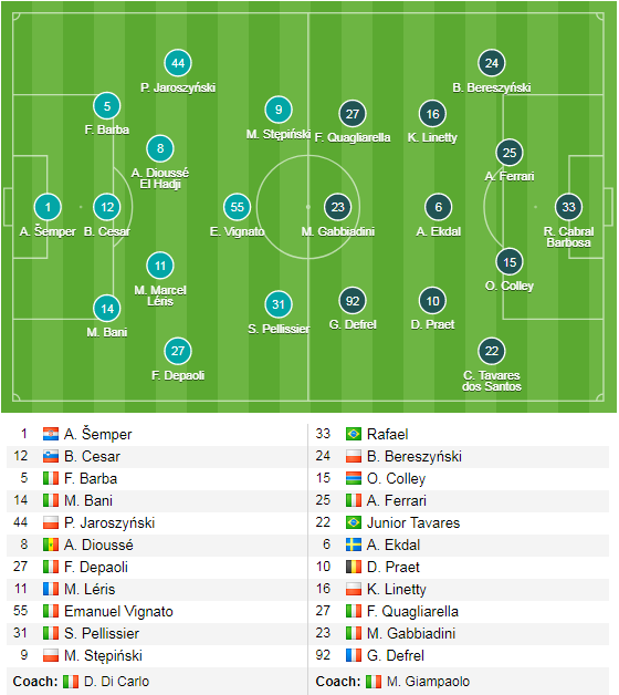 - Ở trận lượt đi, Sampdoria giành chiến thắng 2-0 tại sân nhà.
