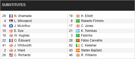 * Danh sách dự bị trận Crystal Palace vs Liverpool (02h45 ngày 26/2)