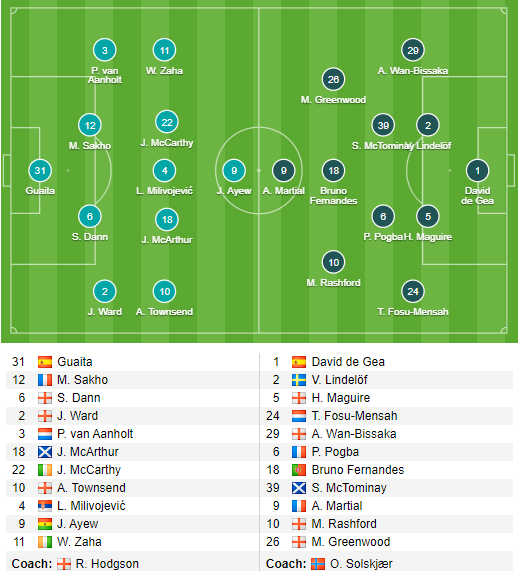 AEGoal.net cập nhật chính xác ĐỘI HÌNH RA SÂN trận Crystal Palace vs Man Utd diễn ra lúc 02h15 ngày 17/07 trong khuôn khổ giải Ngoại hạng Anh.