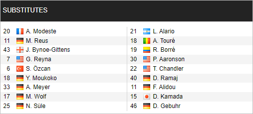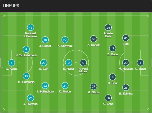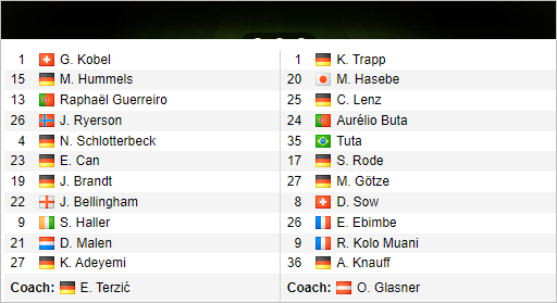 Dortmund: Kobel; Wolf, Can, Hummels, Guerreiro; Reyna ; Brandt, Bellingham, Ozcan, Adeyemi; Haller.
