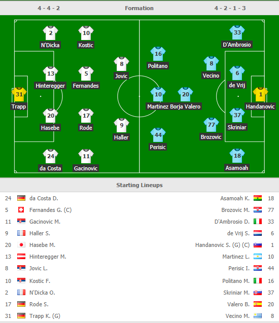 AEGoal.net cập nhật chính xác ĐỘI HÌNH RA SÂN trận Eintracht Frankfurt vs Inter Milan diễn ra lúc 00h55 ngày 08/3 trong khuôn khổ lượt đi Vòng 1/8 - Europa League.