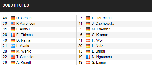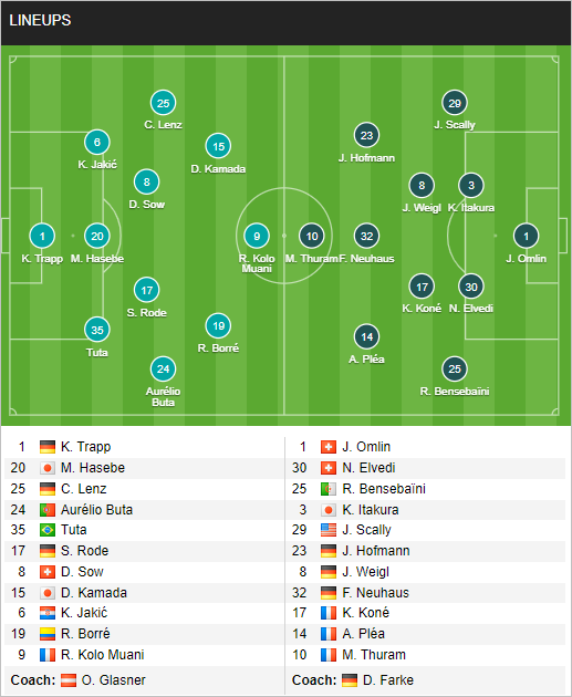 - Eintracht Frankfurt: Lindstrom, Wenig, Toure, Smolcic, Max chấn thương; Gotze (treo giò).