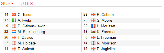 - Everton: Jean-Philippe Gbamin, Jonas Lossl và Andre Gomes vắng mặt vì chấn thương; trong khi Richarlison cũng chưa chắc chắn ra sân.
