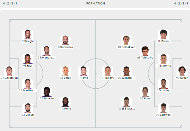 AEGoal cập nhật chính xác đội hình ra sân trận Fiorentina vs AS Roma diễn ra lúc 23h00 ngày 27/05/2023 trong khuôn khổ giải VĐQG Italia.