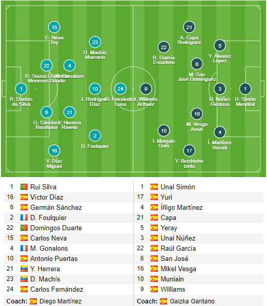 * Bilbao: De Marcos, Villalibre cũng chấn thương trong khi Balenziaga không có thể lực tốt nhất.