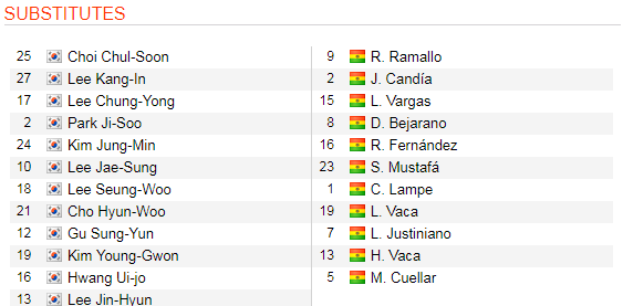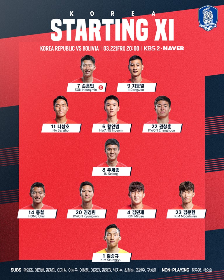 ĐỘI HÌNH RA SÂN trận Hàn Quốc vs Bolivia , 18h00 ngày 22/3: Giao hữu Quốc Tế