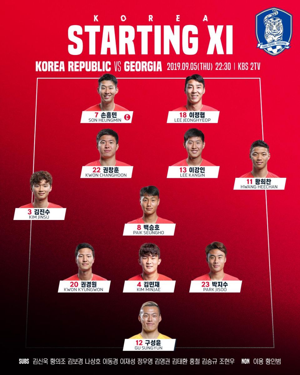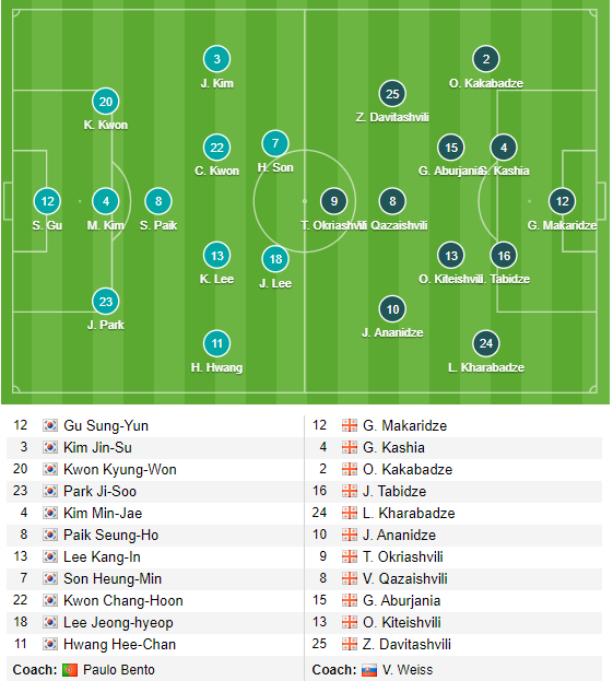 ĐỘI HÌNH RA SÂN trận Hàn Quốc vs Georgia, 20h30 ngày 05/9: Giao hữu Quốc tế