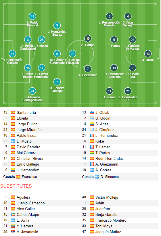 AEGoal.net cập nhật chính xác ĐỘI HÌNH RA SÂN trận Huesca vs Atletico Madrid diễn ra lúc 0h30 ngày 20/01 trong khuôn khổ vòng 20 giải VĐQG Tây Ban Nha.