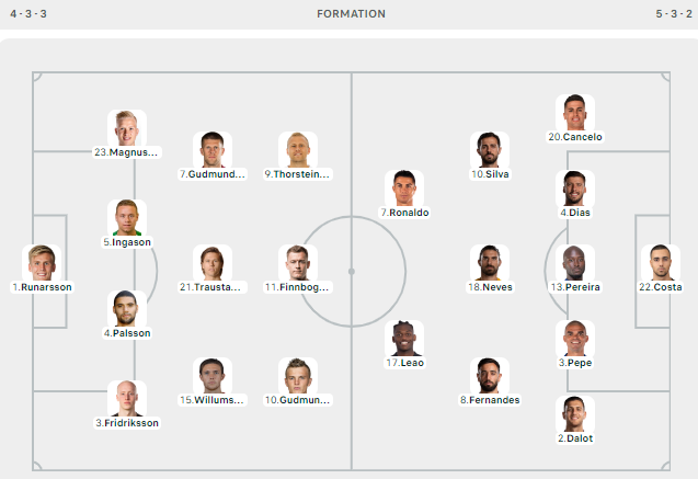 AEGoal cập nhật chính xác đội hình ra sân trận Iceland vs Bồ Đào Nha diễn ra lúc 01h45 ngày 21/6 trong khuôn khổ Vòng loại EURO 2024.