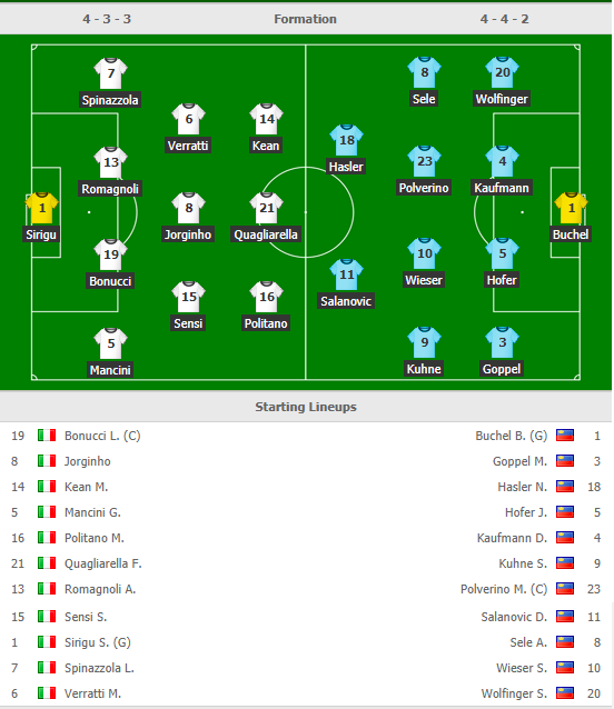 AEGoal.net cập nhật chính xác ĐỘI HÌNH RA SÂN trận Italia vs Liechtenstein diễn ra lúc 02h45 ngày 27/3 trong khuôn khổ vòng loại Euro 2020