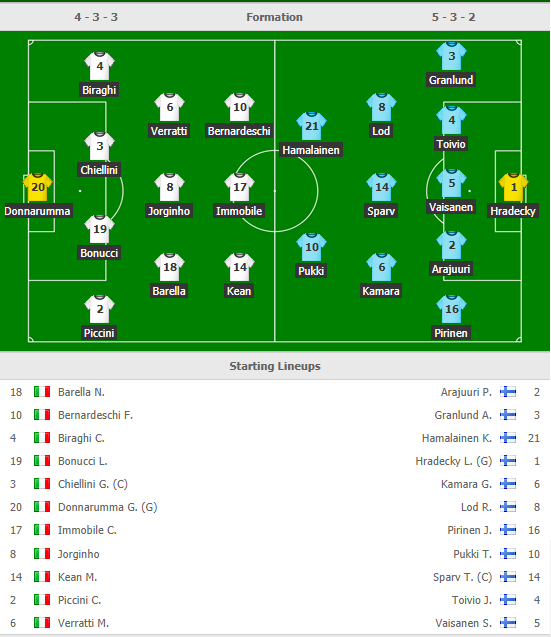 AEGoal.net cập nhật chính xác ĐỘI HÌNH RA SÂN trận Italia vs Phần Lan diễn ra lúc 2h45 ngày 24/3 trong khuôn khổ vòng loại Euro 2020 - bảng J.