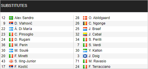 * Danh sách dự bị trận Juventus vs Verona (01h45 ngày 02/4)