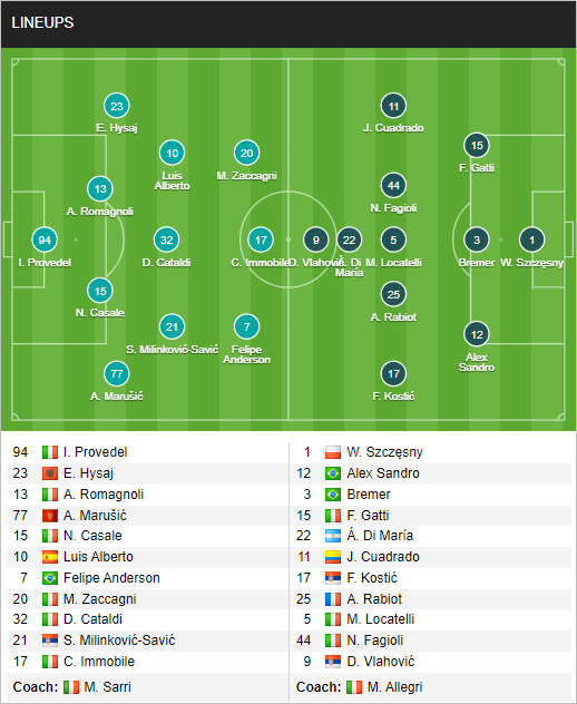 * Đội hình ra sân trận Lazio vs Juventus (01h45 ngày 09/4)