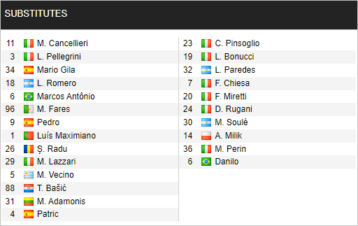 * Danh sách dự bị trận Lazio vs Juventus (01h45 ngày 09/4)