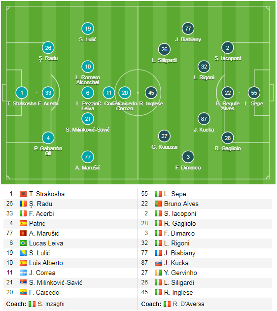 * Lazio: Jordan Lukaku chấn thương còn Immobile bị treo giò.