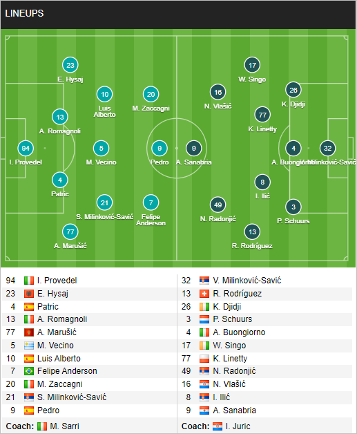 AEGoal cập nhật chính xác đội hình ra sân trận Lazio vs Torino diễn ra lúc 23h00 ngày 22/04/2023 trong khuôn khổ giải VĐQG Italia.