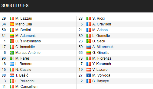 * Danh sách dự bị trận Lazio vs Torino (23h00 ngày 22/4)