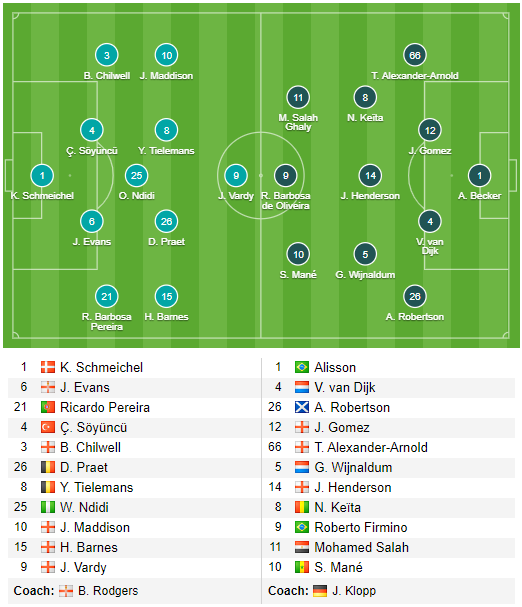 AEGoal.net cập nhật chính xác ĐỘI HÌNH RA SÂN trận Leicester City vs Liverpool diễn ra lúc 03h00 ngày 27/12 trong khuôn khổ Vòng 19 giải Ngoại hạng Anh.