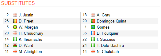 * Leicester City: Matty James chấn thương còn Demarai Gray không sung sức.