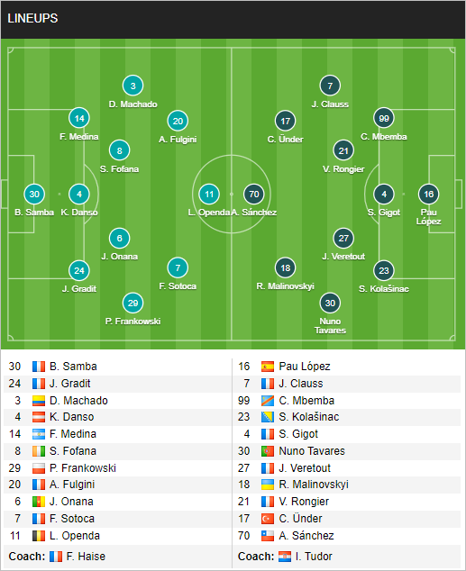 - Lens: Machado, Fortes, Farinez, Said chấn thương; Samed (treo giò); Cabot (nghi ngờ).