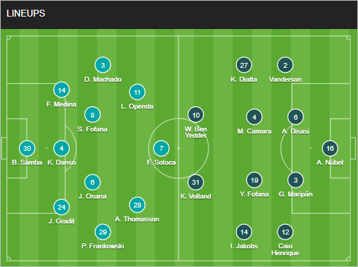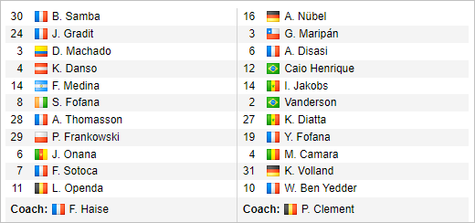 - Lens: Salis Abdul Samed dính án treo giò; Steven Fortes, Adam Buksa, Wuilker Farinez và Julien Le Cardinal cũng vắng mặt vì chấn thương; còn Jimmy Cabot vẫn chưa chắc ra sân.