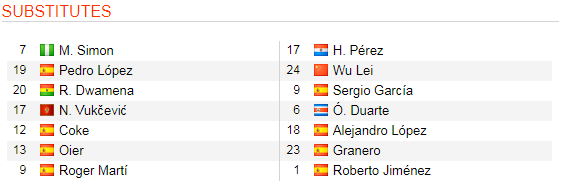 Espanyol: Pablo Piatti, David Lopez, Facundo Ferreyra, Roberto Rosales chấn thương; Hernan Perez bỏ ngỏ khả năng ra sân.