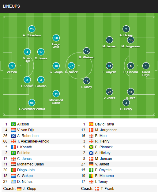 AEGoal cập nhật chính xác đội hình ra sân trận Liverpool vs Brentford diễn ra lúc 23h30 ngày 06/05/2023 trong khuôn khổ giải Ngoại hạng Anh.