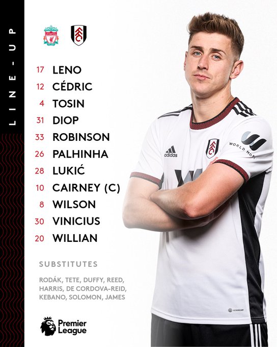 Fulham (4-2-3-1): Leno, Tete, Adarabioyo, Ream, Robinson, Palhinha, Reed, Reid, Pereira, Wilson, Vinicius